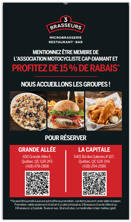 3 Brasseurs | 650 Grande Allée E. Québec, 54101 Bd des Galeries /107 Québec | ![]() | |||